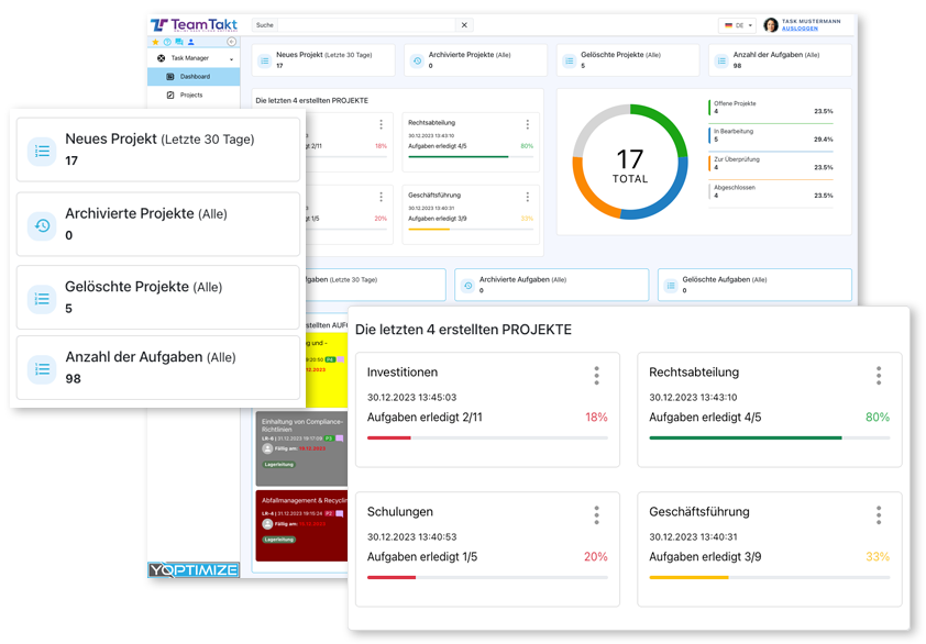 Die ständig wachsende Anzahl an Projekten, die täglich mit unserem Task Manager umgesetzt werden, unterstreicht die zunehmende Beliebtheit des Moduls. Unser Projektmanagement-Tool ist das perfekte Instrument, um deine Ziele effektiv zu erreichen.